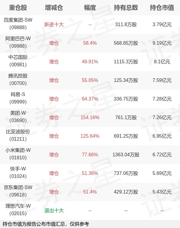 本站消息,10月28日广发基金旗下刘杰管理的广发恒生科技交易型开放式指数基金(QDII)公布三季报间群策略,近1年净值增长率34.58%。与上一季度相比,该基金前十大重仓股新增百度集团-SW;并对阿里巴巴-W增仓209.72万股,为该基金第一大重仓股;理想汽车-W等退出前十大重仓股;详细数据如下:
